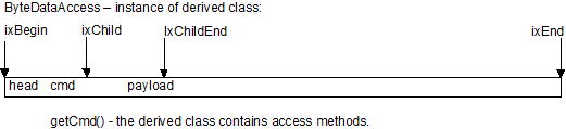 The universal super class ByteDataAccessBase contains a pointer to the data and indices to the actual positions. This basic class provides methods such
